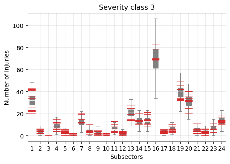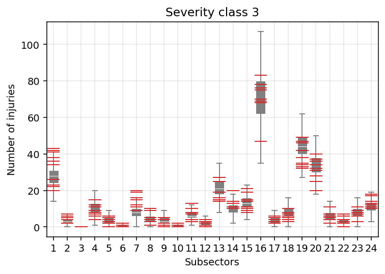 Now, let’s look at it from another angle and compare, say, severity class 3 across sectors.