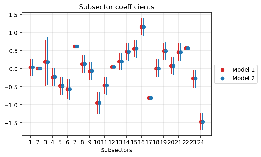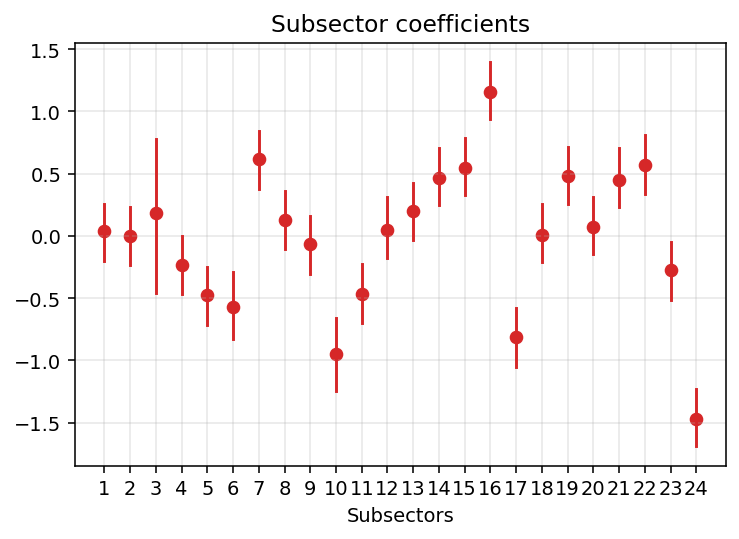 Since we are here though we can as well put some partial pooling on our subsector intercepts because why not, it’s hard to go wrong with pooling information: